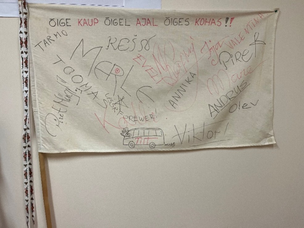 Kunagi oli meie meeskonna moto (ja see kehtib ka praegu, kuigi inimesed on vahetunud) – õige kaup õigel ajal õiges kohas. Ühel jõuluüritusel tegime isegi selle kohta lipu ja kinnitasime oma nimedega. Aasta siis oli 2005. See lipp on praegugi minu kabinetis hoiul.