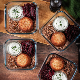 Kodused kotletid tatra, peedisalati ja mädarõikakastmga