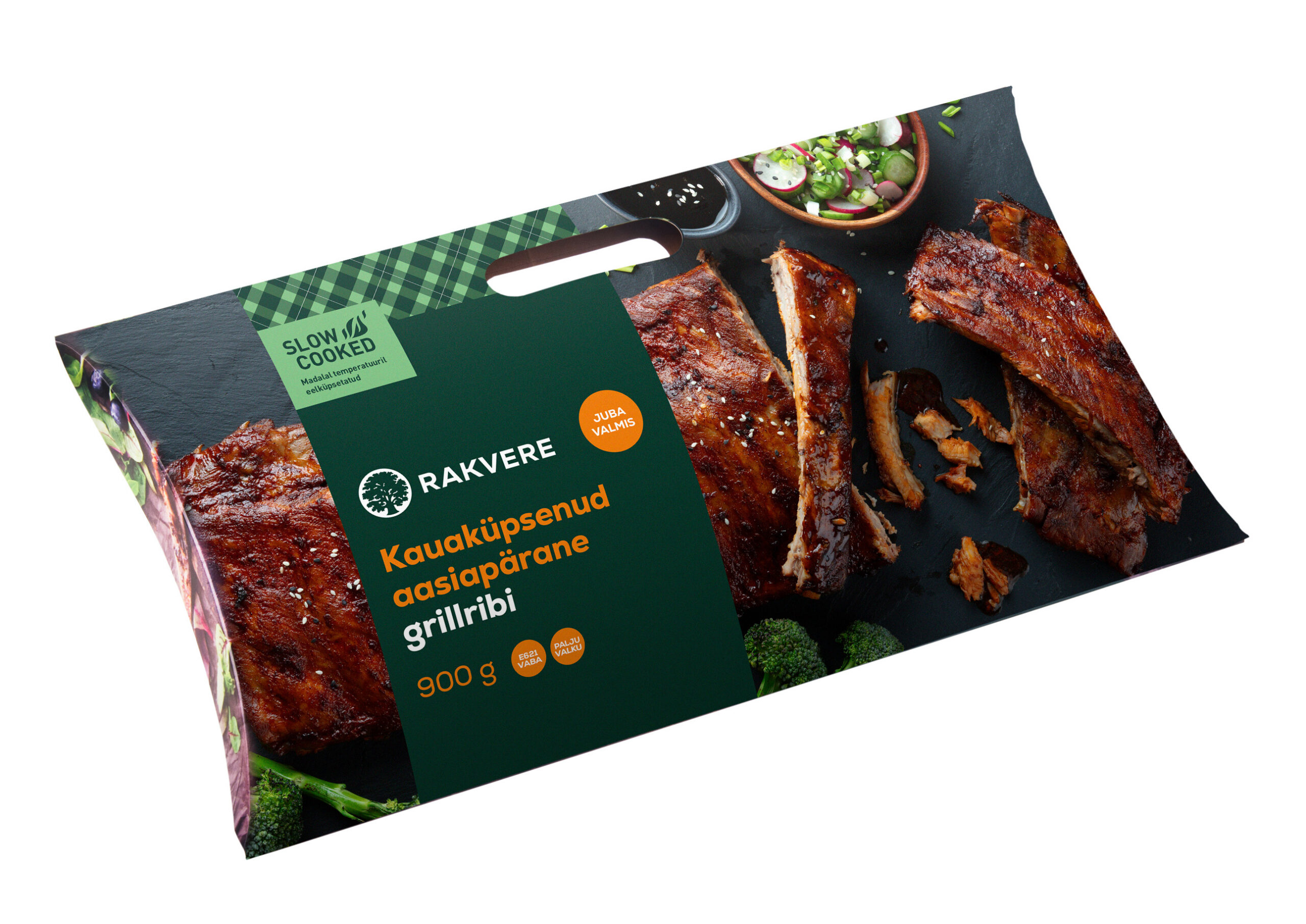 Eelküpsetatud searibi, mille liha on mahlane ja pehme. Maitses on tunda kerget vürtsikust, suitsust nüanssi ja aromaatset küüslaugu nooti, mis annavad ribidele erilise ja tasakaalustatud aasiapärase maitse. Sobib hästi nii grillimiseks kui ahjus soojendamiseks, pakkudes nauditavat ja rikkalikku grillielamust.